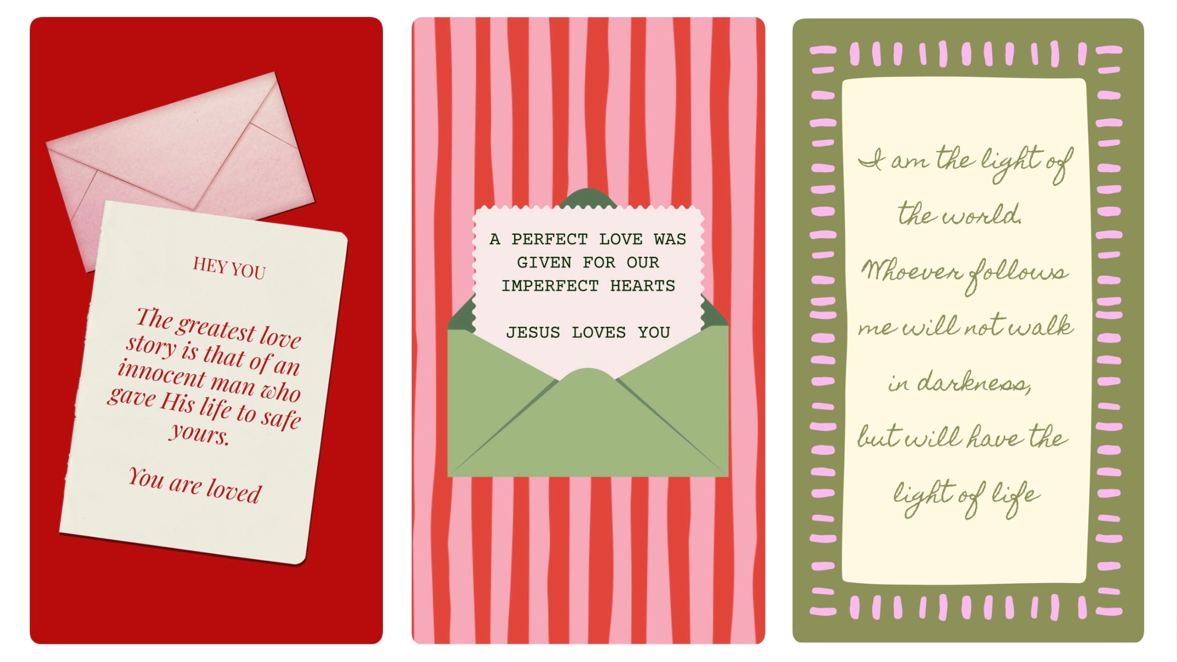 Kleine evangelisatie kaartjes in 3 verschillende ontwerpen. Je bent oneindig geliefd en mooi gemaakt door Degene die jou heeft gevormd. Laten we daarom het Licht van de wereld delen in de duisternis. Laat je vandaag iemand weten hoeveel Jezus van hem of haar houdt?