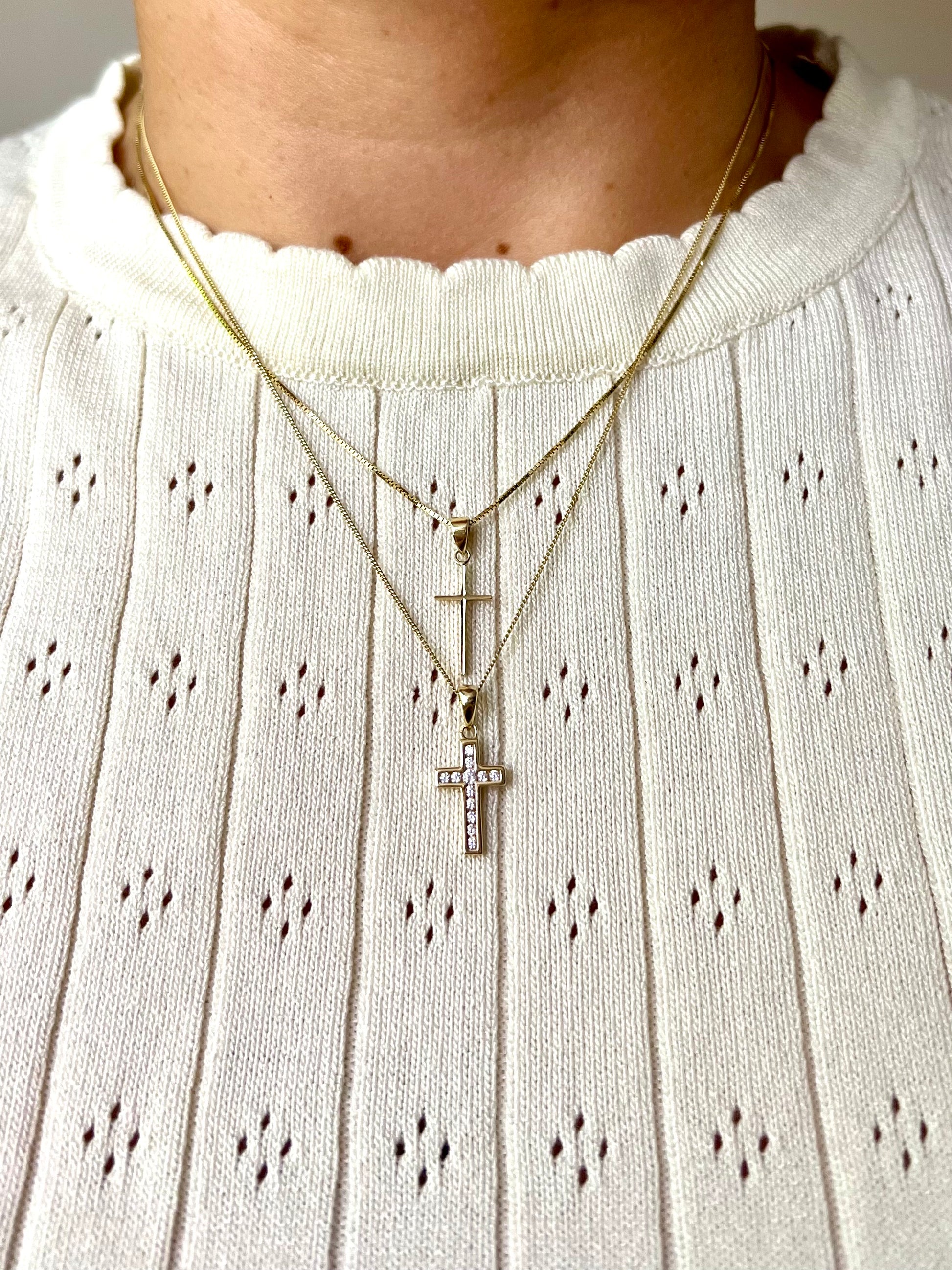 Full zirconia inlaid cross. 15mm and 14K solid gold